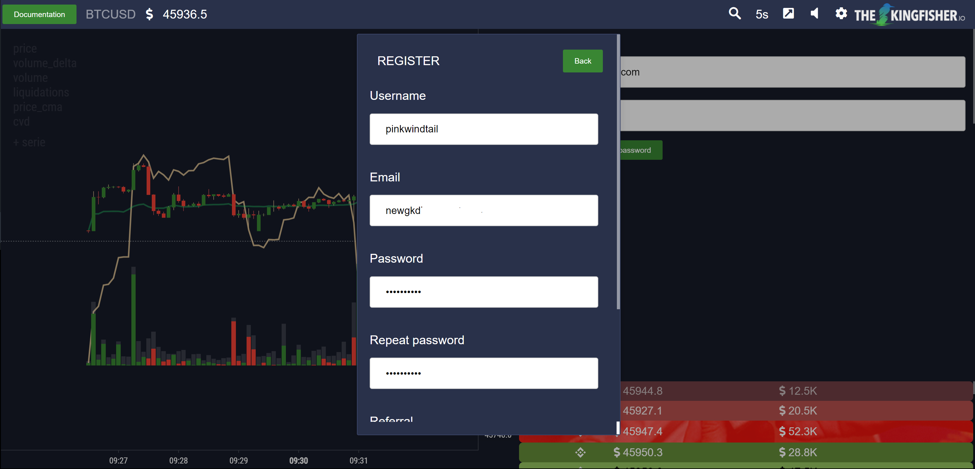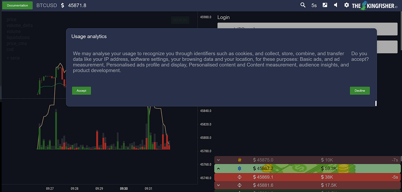 Kingfisher에서 강점으로 이야기 하는게 거래창의 초단위 거래량 데이터 제공 및 cvd 제공 입니다.
