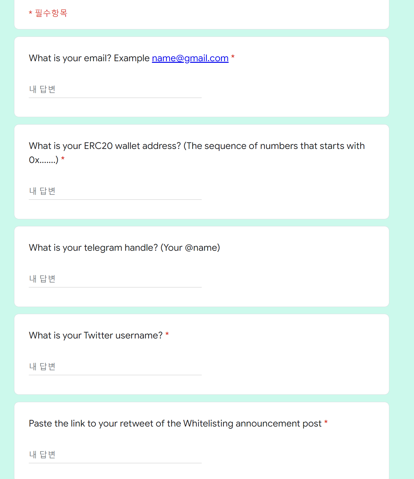 화이트리스트 등록을 해야 하는 IDO나 에어드랍이 많아서 참여를 하고 있는데 양식 제출을 하려고 하니 처음이라 어려운 게 많네요. 여러분도 마찬가지겠죠? 그래서 가이드를 작성했어요.