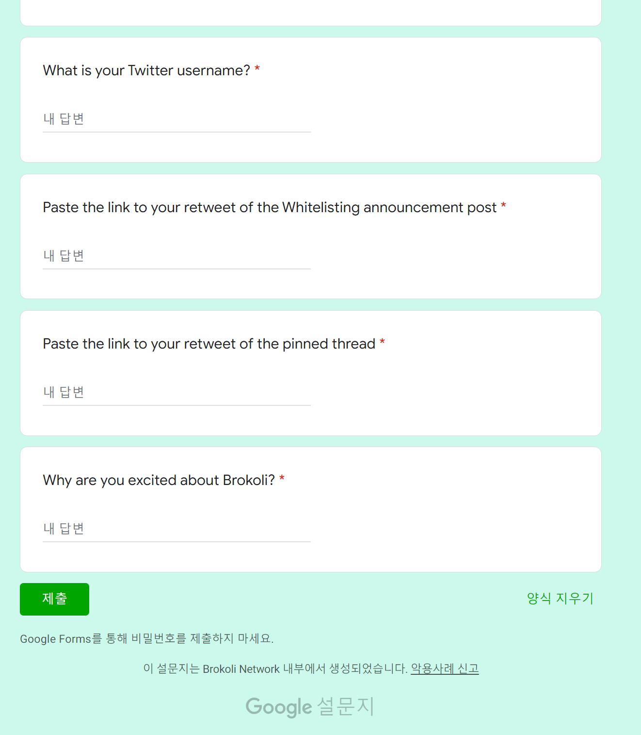 예제로 사용할 Whitelist는 브로콜리 네트워크 입니다.