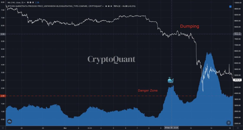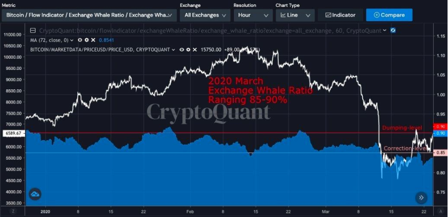2020년 3월에는 거래소 고래비율이 꾸준히 85% 이상이었고, 가짜 상승장(Fake bull)이었습니다