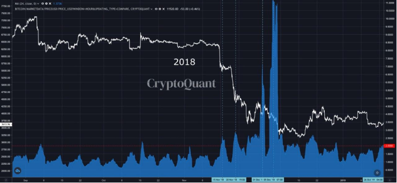 2.Exchange Whale Ratio(거래소 고래비율)
