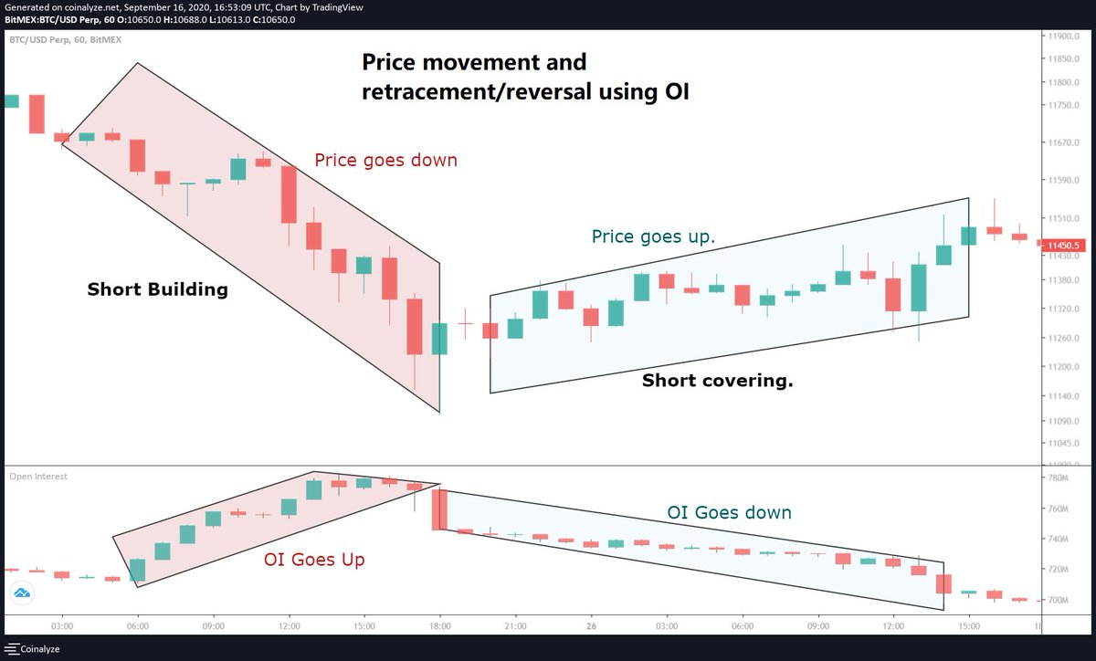 위 차트에서 OI가 상승하는 동안 가격이 언제 하락하는지 볼 수 있습니다.