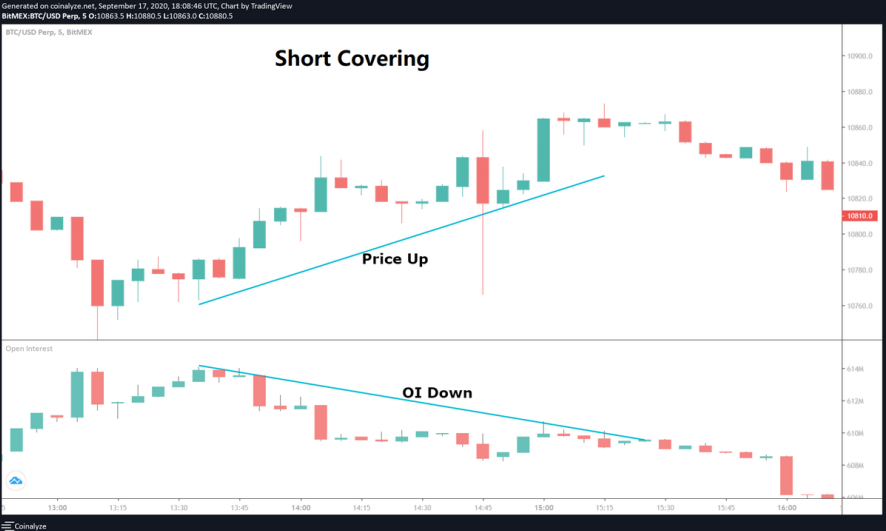 가격은 올라가지만 OI는 하락합니다. (숏 커버링)