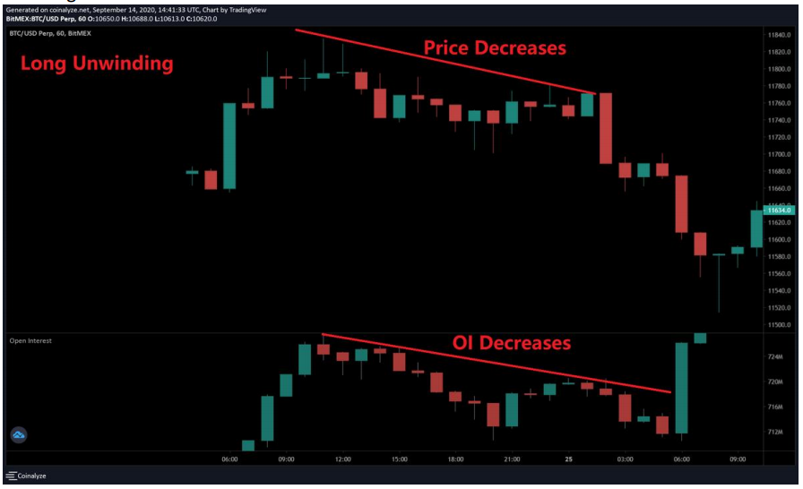 이러한 상황은 이전에 롱 포지션 보유 참여자들이 종료/익절을 할 때 나타납니다.
