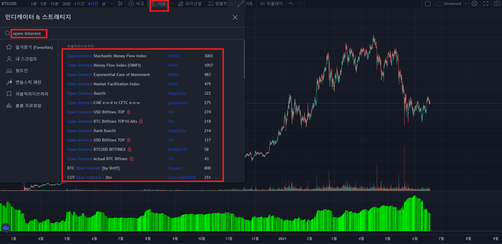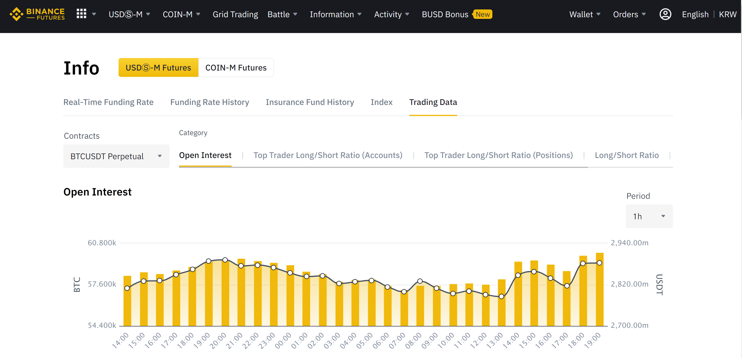시간봉,일봉에서 Open interest 체크 , 조금 기다리면 나옵니다.
