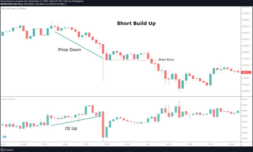 숏 빌드업도 가격 하락, OI 하락이라고 헷갈릴 수 있습니다.