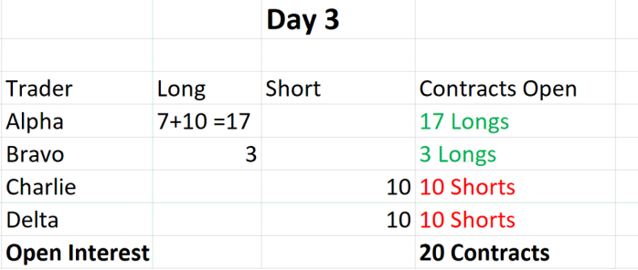 결론 : 새로운 거래자 또는 참여자를 통해 새로운 계약이 생성되면 새로운 미결제 약정이 생성됩니다.