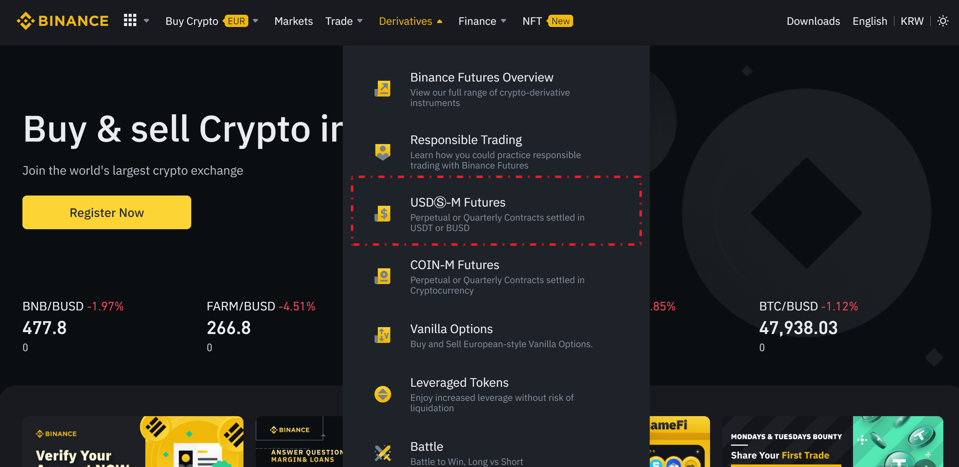 빨간색 박스안의 'USD-M Futures'으로 이동을 합니다.