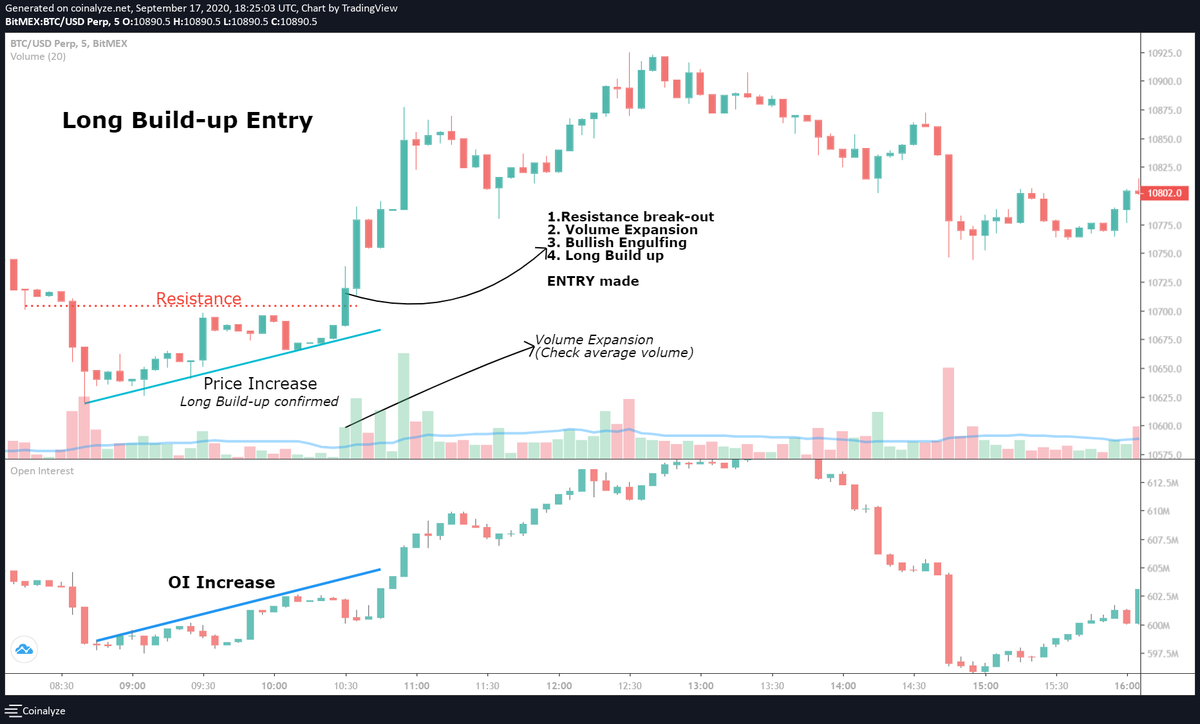 1. 상단 저항 유무 확인, 가격과 OI가 같이 상승을 확인 (롱 빌드업 확인)